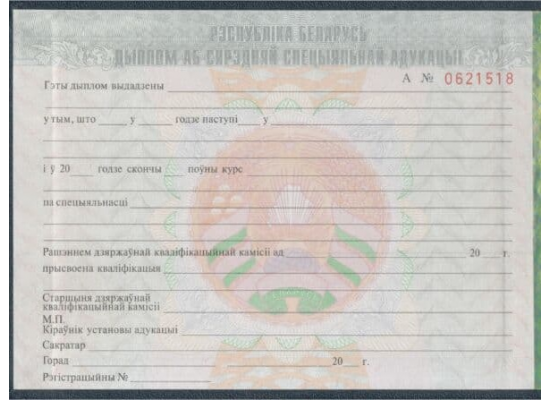 Покупая диплом техникума Белоруссии 2011- 2012 гг. в Компании «EXPRESS-Дипломы», вы можете быть уверены в его достоверности и соответствии государственным нормам и требованиям. Мы гарантируем, что наши Диплом техникума Белоруссии 2011- 2012 гг. заполняются по учебному плану нужного учебного заведения на нужный год окончания, делается всё по уставу.